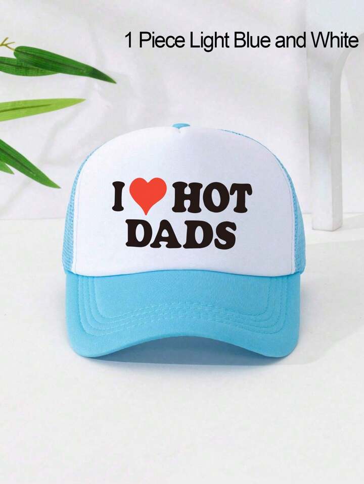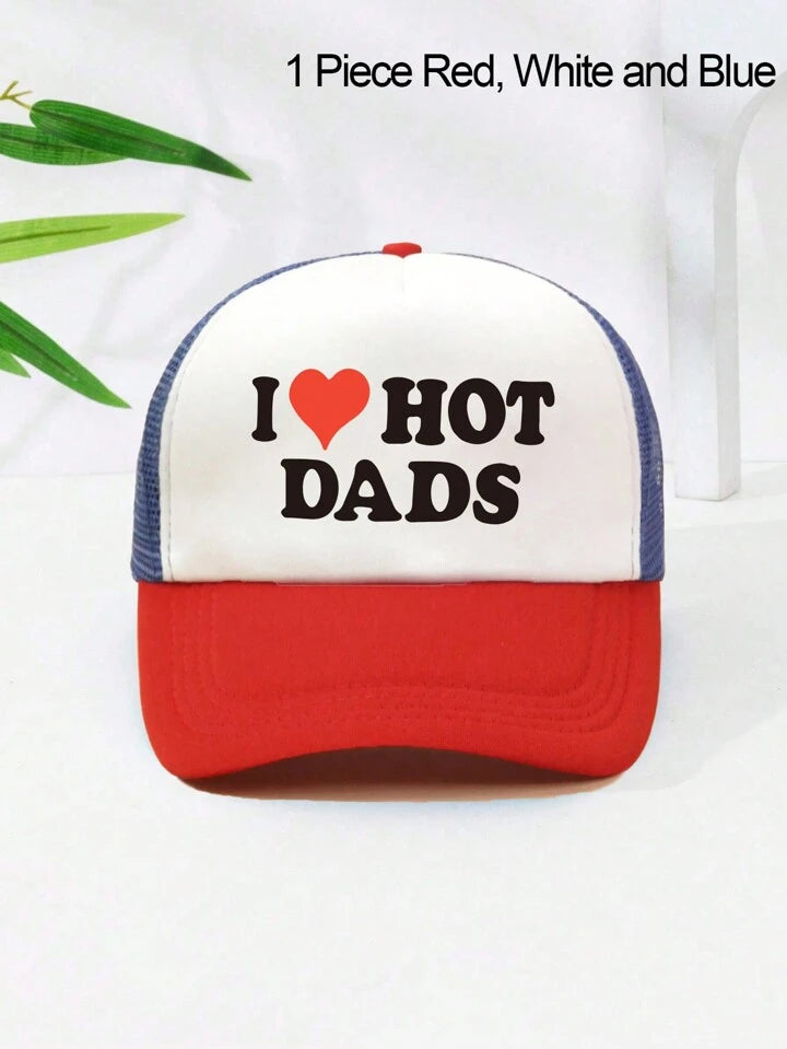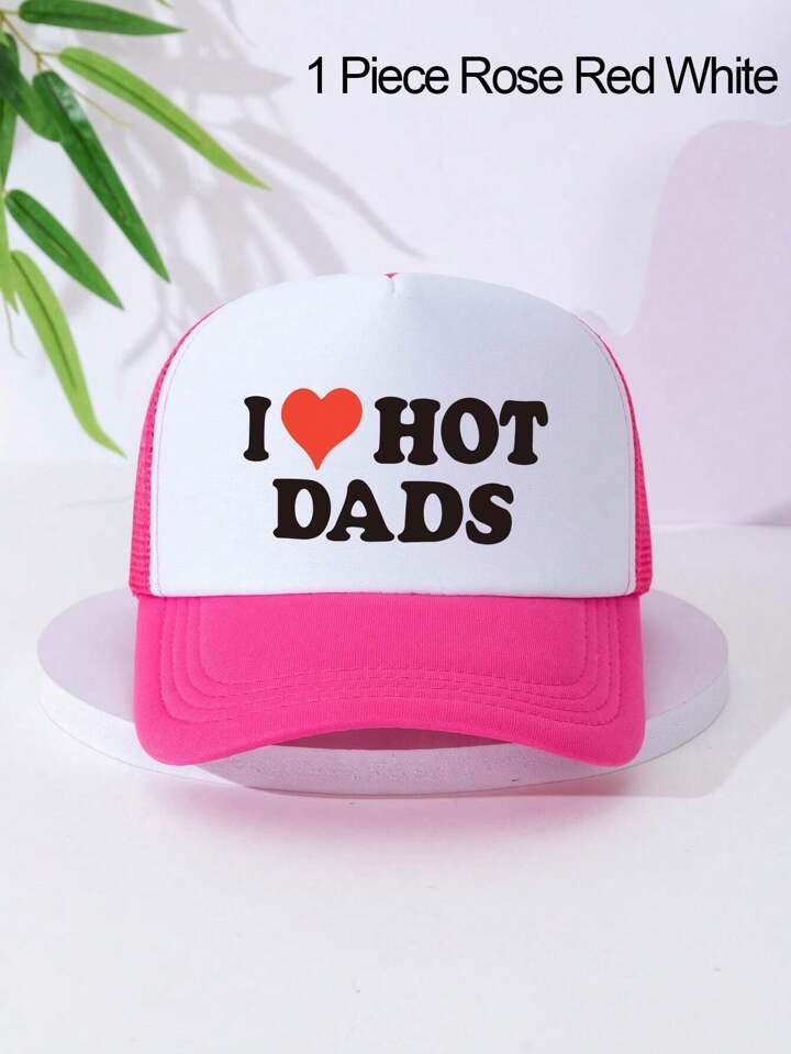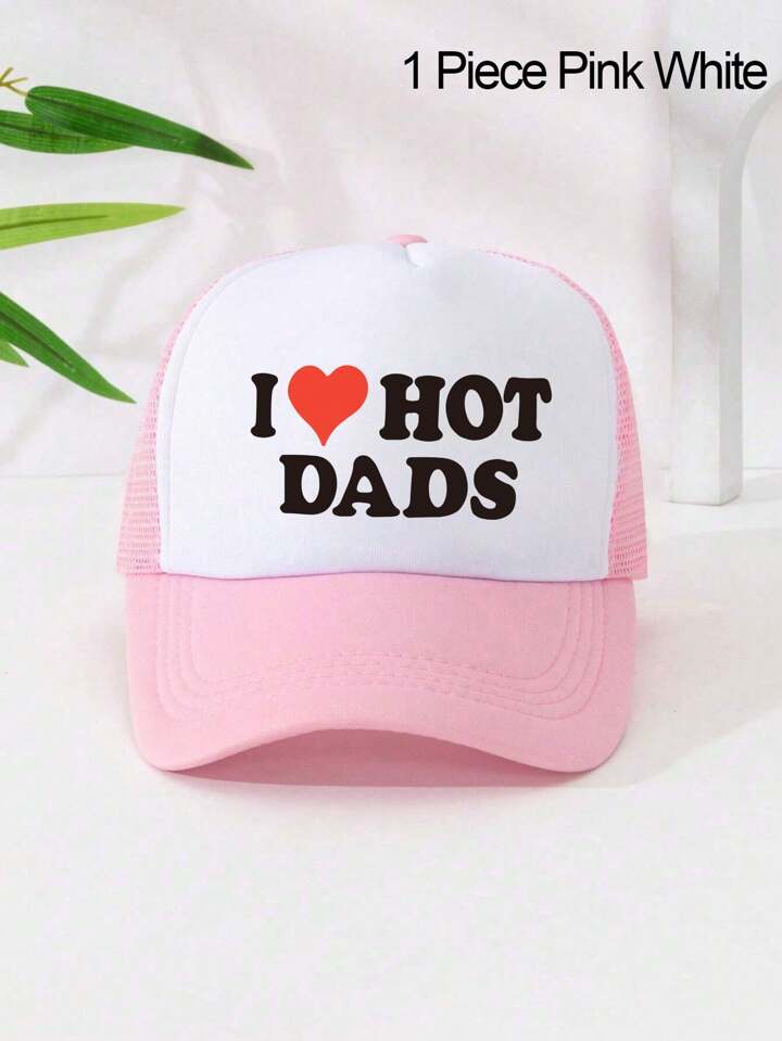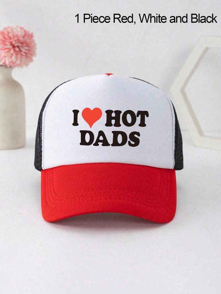 1 PC Letter I LOVE HOT DADS Printed Game Day Baseball Cap, Adjustable Outdoor Visor, Spring And Fall, Travel, Beach, Y2k Style, Dad Hat, Mesh Breathable Trucker Hat, Best Holiday Gift Valentine's Day Valentines