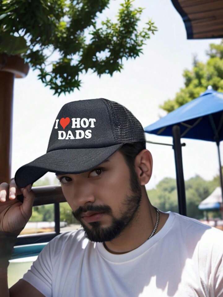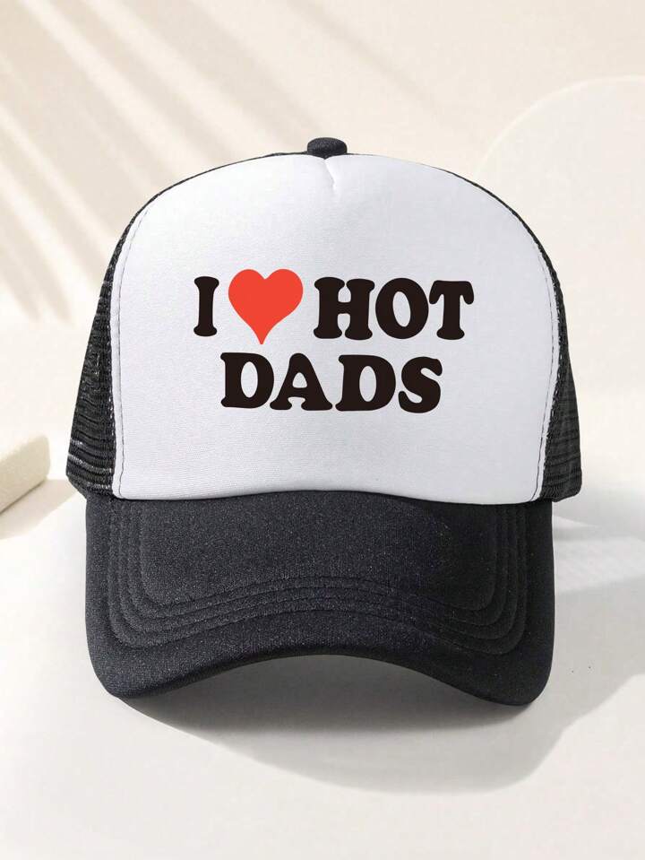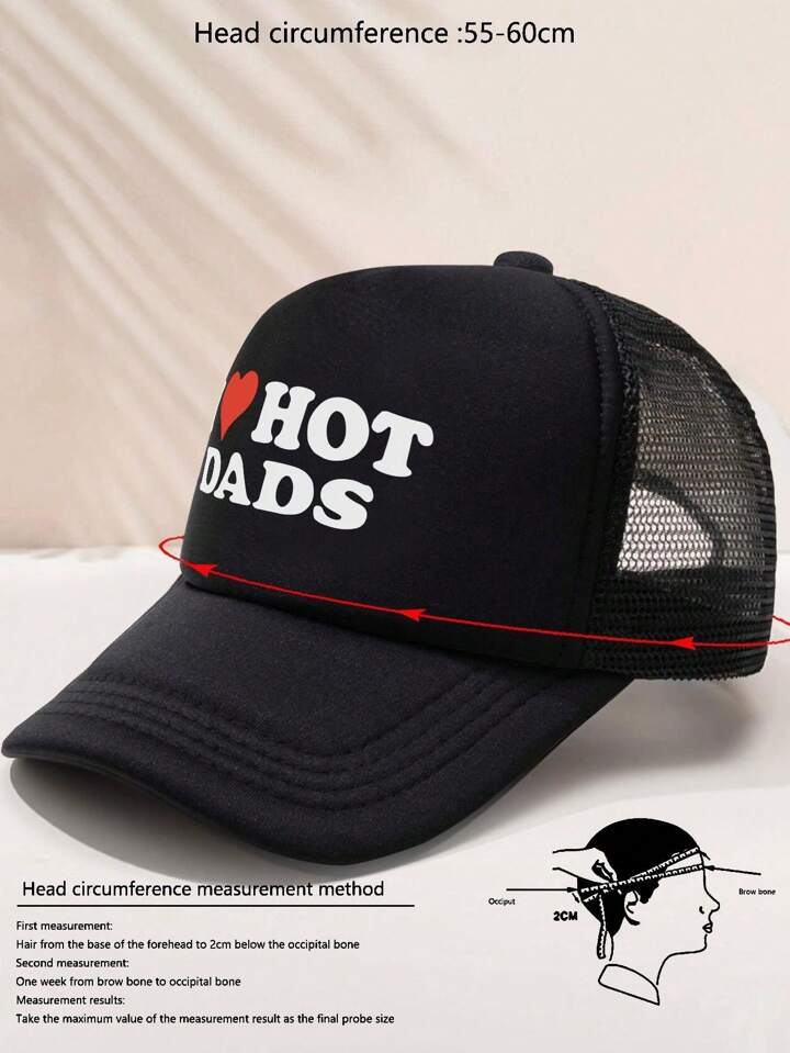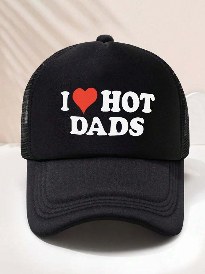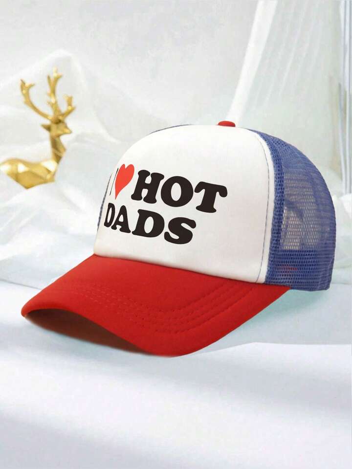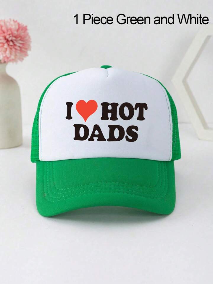 1 PC Letter I LOVE HOT DADS Printed Game Day Baseball Cap, Adjustable Outdoor Visor, Spring And Fall, Travel, Beach, Y2k Style, Dad Hat, Mesh Breathable Trucker Hat, Best Holiday Gift Valentine's Day Valentines