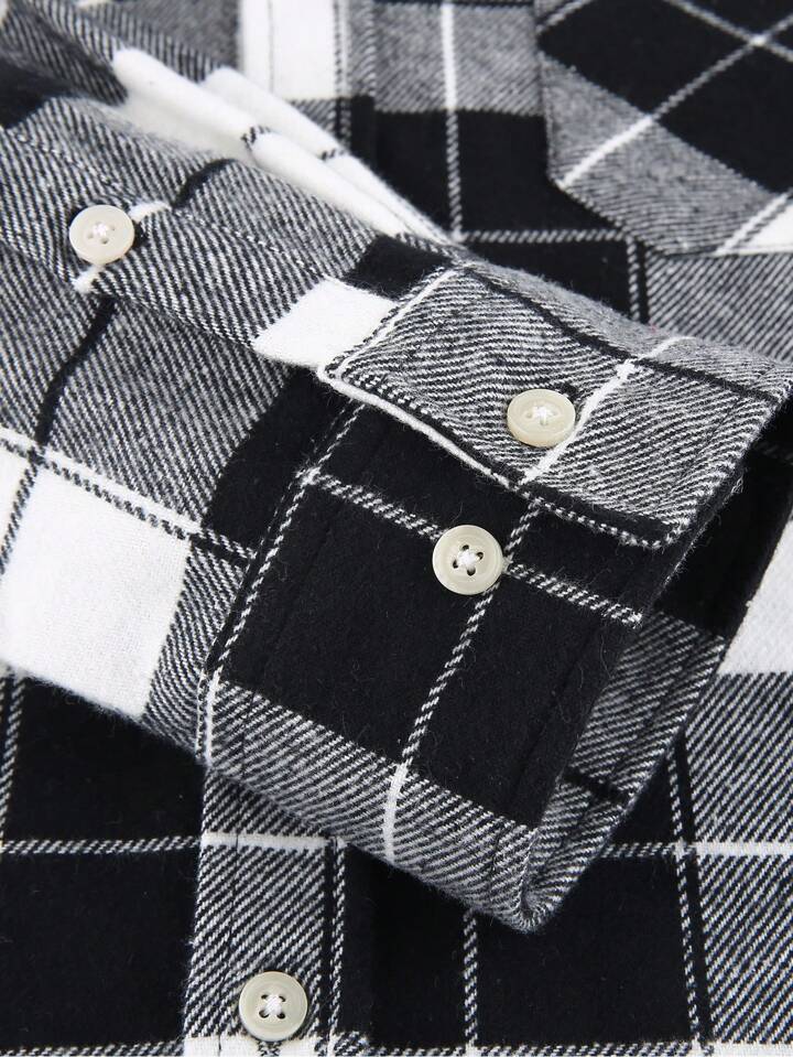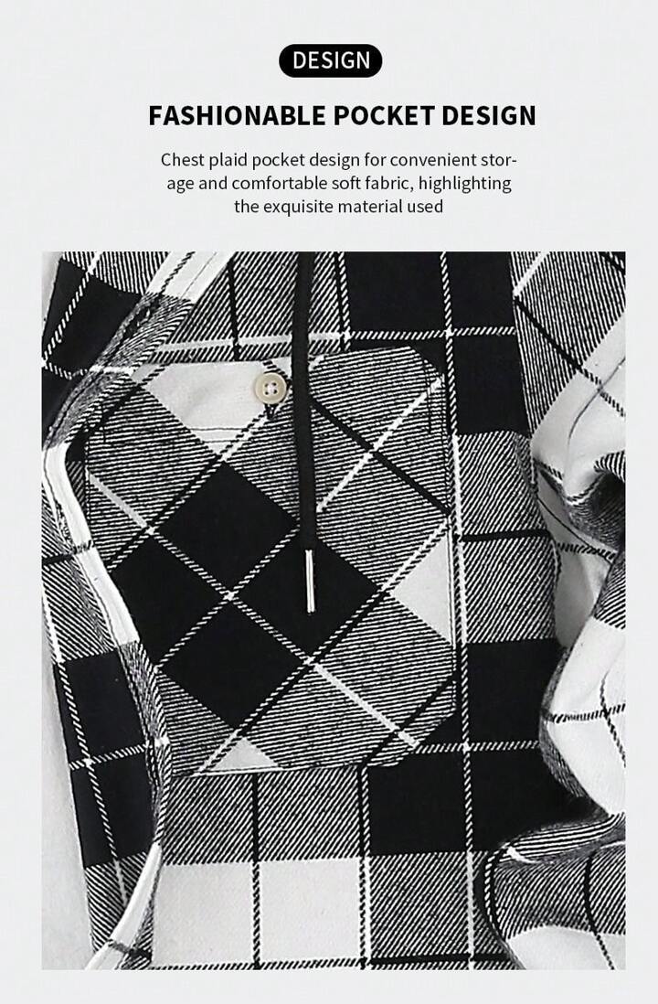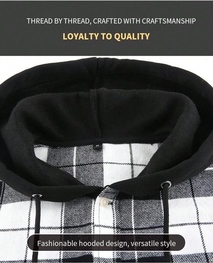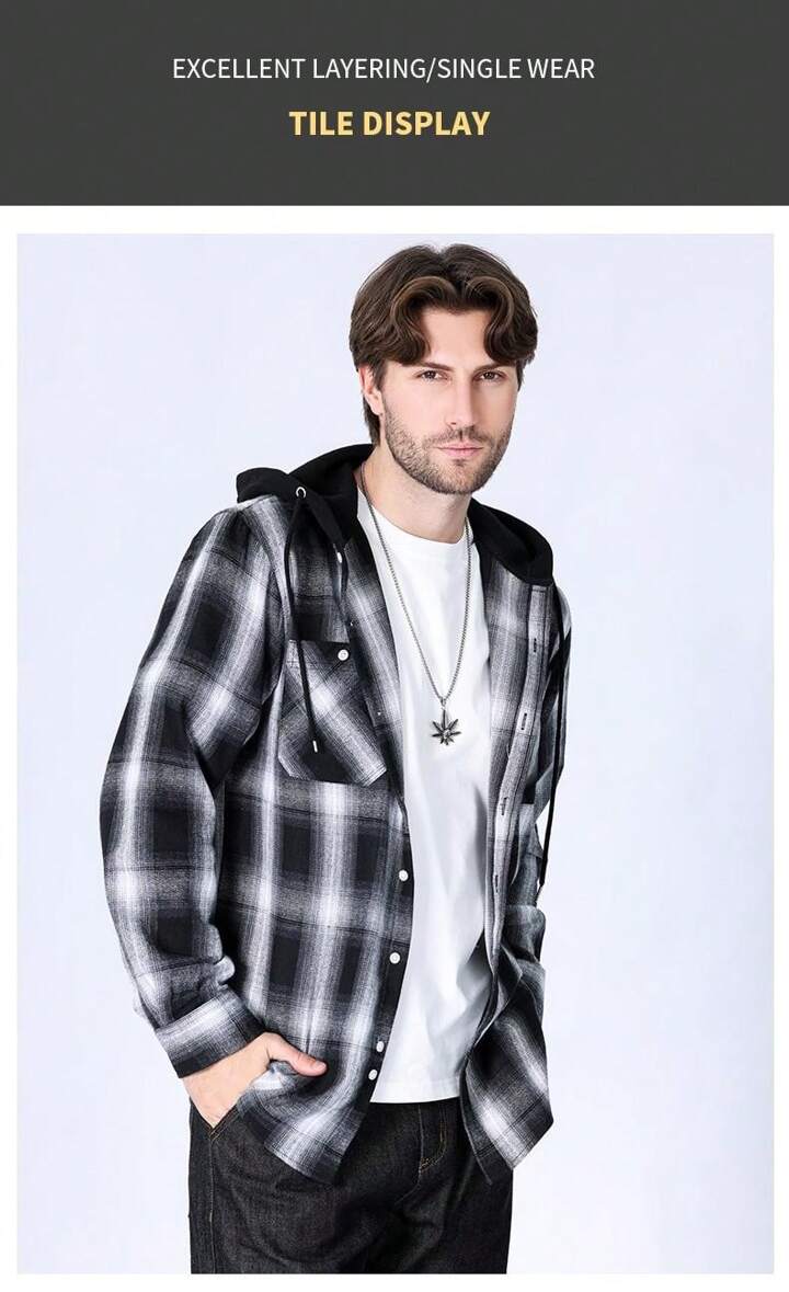 1pc Men's Hooded Plaid Button Turndown Collar Regular Fit Long Sleeve Shirt, Chest Double Pockets Casual Outdoor Shacket
