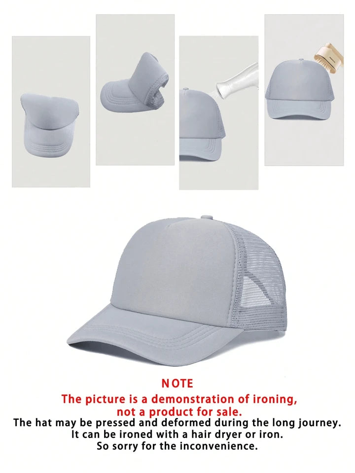 - Design & Style: The hat features a letter pattern, is described as casual, and can be a Hip-Hop Cap, Curved Brim Hat (Dad Cap), or Mesh Cap (Trucker Hat) with a foam baseball cap crown type.