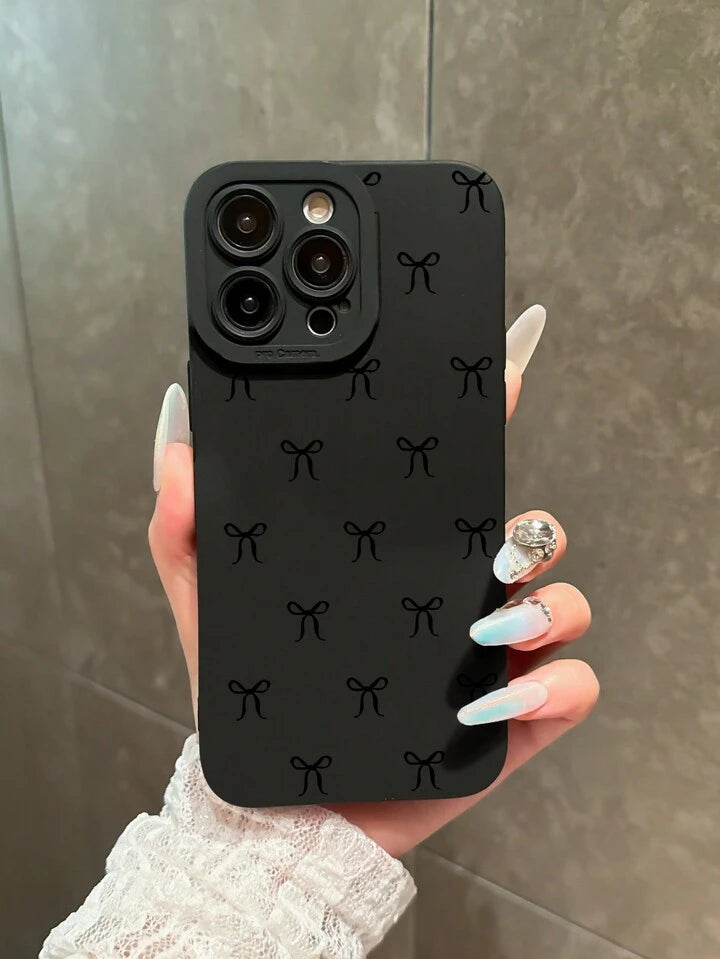 Black Bow Knot Style Shockproof Phone Case Suitable For IPhone 16 Pro Max, 14, 13, 12, 11 Pro Max, XS Max, X, XR, 8, 7 Plus, Mini, Ideal As Birthday Gift For Girlfriend, Boyfriend Or Self-Use Waterproof Anti-Fall Scratch Resistant