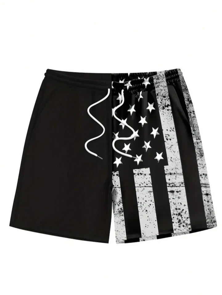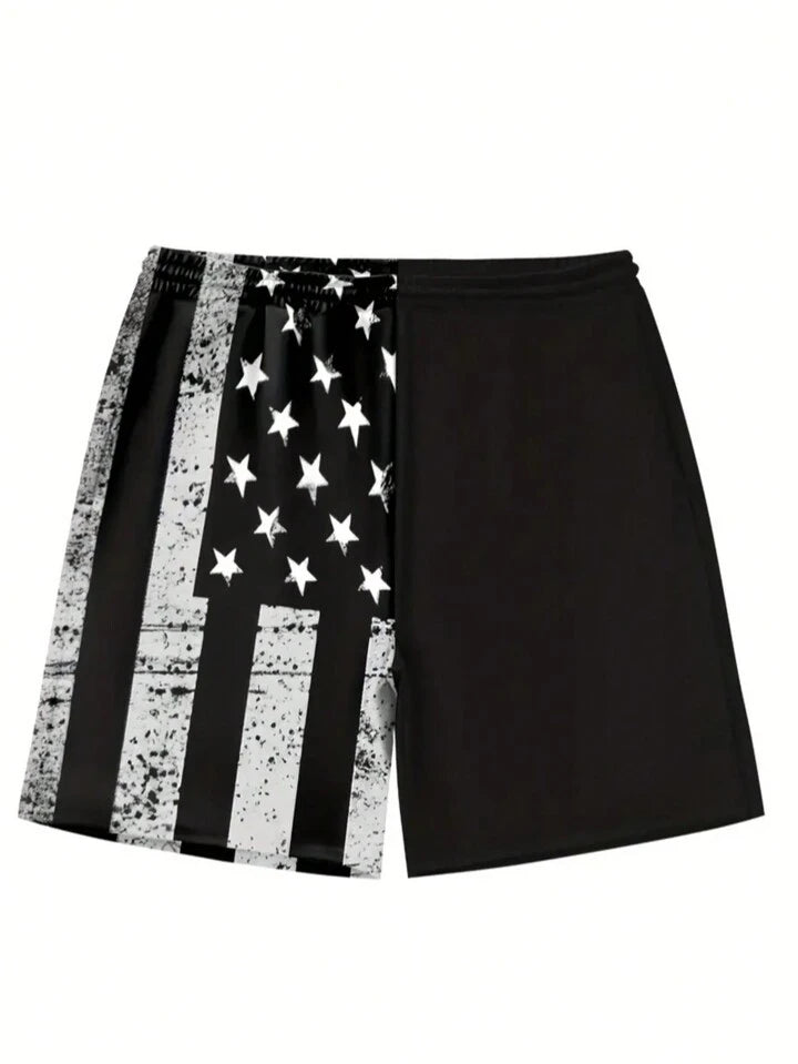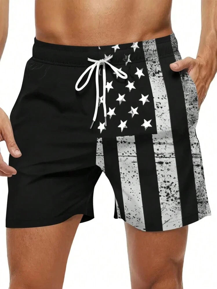 Men's Quick Dry National Flag Lining Elastic Waistband Drawstring Waist Casual Summer Fashion Sport Beach Shorts, Suitable For Vacation, Beach, Pool, Outdoor Activities, Dail