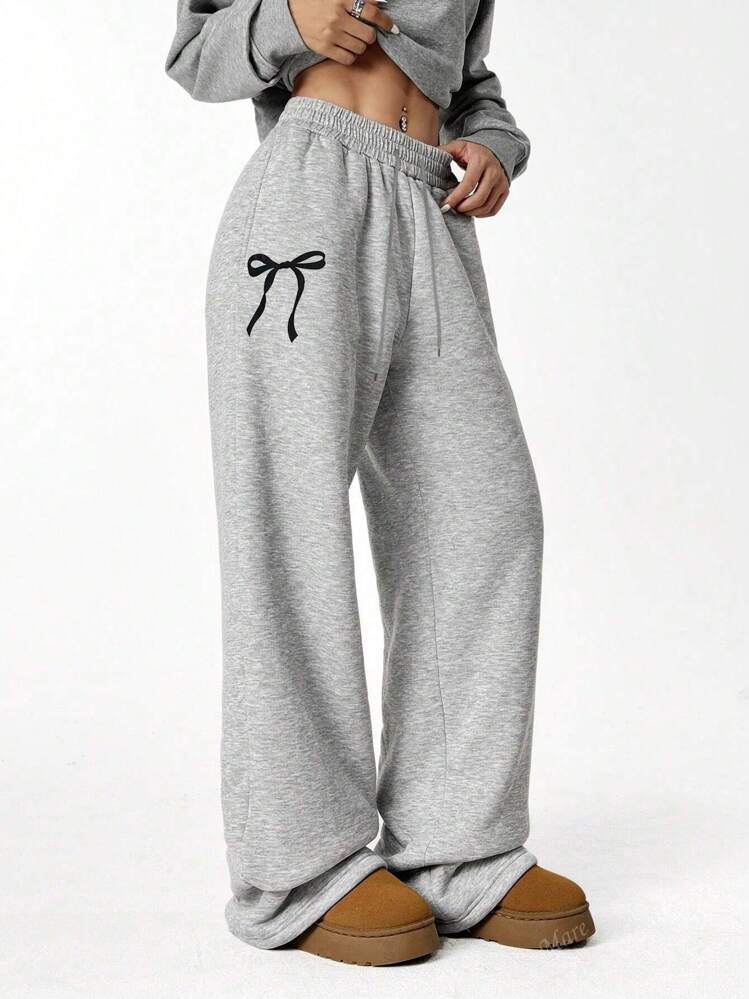Tween Girls Basic Grey Casual Sweatpants, Butterfly Print Y2K Relaxed Fit